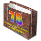 This colourful and fun birthday gift bag design, inspired by street art and graffiti, features a large number "78" having a rainbow spectrum gradient inspired pattern. It also features the message "Happy 78th Birthday,", and a personalised name. The background features a brick wall inspired pattern. A gift bag like this might be a fun way of wrapping a birthday present or gift being given to somebody who is celebrating their seventy eighth birthday. [~Z0000522]