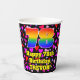 This joyful and cheerful birthday paper cup design features a large number “78” with a rainbow spectrum gradient inspired pattern, along with the message “Happy 78th Birthday,”, and a personalised name. The background features a pattern of heart shapes with colours like purple, red, and pink. Upbeat, fun paper cups like this might be fun to have at a birthday celebration being held to celebrate somebody’s 78th birthday. [~Z0000548]