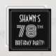 The front of this stylish seventy-eighth birthday party invitation card design features an editable name, a fancy art deco style inspired number “78th”, the message “BIRTHDAY PARTY!”, and a border pattern consisting of lines. The front also has a black-coloured background by default, but it can be customised to a different colour if desired. The back features personalised details about the event, such as the date, time, location/venue, and any other information that may be important. Elegant, luxurious, customisable invitations like these might be used to invite guests/attendees to a birthday party being held to celebrate somebody’s 78th birthday. [~Z0000615]