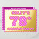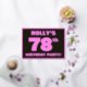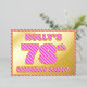 The front of this fun and bold seventy-eighth birthday party foil invitation/announcement card features an editable name, a large number “78th”, the message “BIRTHDAY PARTY!”, and a border, all featuring a girly light pink and dark pink stripes pattern. The back features personalised details about the event, such as the date, time, venue, and any other information that may be relevant. Editable invitations like these might be used to invite guests/attendees to a birthday party/gathering being held to honour somebody’s 78th birthday. [~Z0000597]
