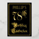 The front of this opulent and luxurious foil seventy-eighth birthday party invitation design features the message “78th Birthday Celebration” in ornate script-style text. It also features an editable name. The background of the front is coloured black by default (although it can be customised to a different colour). The back features personalised details about the event, such as the date, time, location, and any other relevant information. Elegant, ornate, customised invitations like these might be used to invite guests to a birthday celebration being held in celebration of somebody’s seventy-eighth birthday. [~Z0000589]