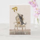 Grey tabby cat with gold foil balloons on an old-fashioned chair for 79th birthday.