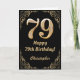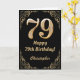 79th Birthday Black and Gold Glitter Frame Card