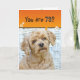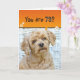 Cute brown poodle with daisies on wicker chair for 79th birthday,