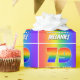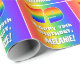This fun and vibrant birthday wrapping paper design features a large number “79” having a colourful rainbow spectrum inspired gradient pattern. It also features the message “HAPPY 79th BIRTHDAY,”, and a custom recipient name. The background also features an exciting multicolored rainbow spectrum inspired gradient pattern. Personalised wrapping paper like this might be used when wrapping presents being given to somebody in celebration of their 79th birthday. [~Z0000572]