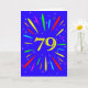 An explosive 79th birthday card! What a wonderful way to send birthday greetings. The number 79 in bright yellow with an explosion of bright colours and stars.