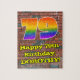 This fun and exciting urban graffiti and street art inspired birthday jigsaw puzzle design features a large number “79” with a colourful rainbow spectrum gradient inspired pattern, along with the message “Happy 79th Birthday,”, and a personalised name. The background has a brick wall pattern. A colourful, editable birthday puzzle like this might be used to celebrate somebody’s seventy-ninth birthday. [~Z0000545]