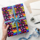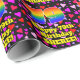 This joyful and happy birthday-themed wrapping paper design features a large number “79” with a rainbow spectrum gradient inspired pattern, along with the message “Happy 79th Birthday,”, and a personalised name. The background features a pattern of purple, pink, and red heart shapes of various sizes. Birthday themed wrapping paper like this might be a fun way to wrap a gift or present being given to somebody who is celebrating their seventy ninth birthday. [~Z0000549]