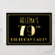 The front of this 1920s-1930s style inspired seventy-ninth birthday party foil invitation features a custom name, a large art deco style inspired number “79th”, the message “BIRTHDAY PARTY”, and a border pattern consisting of lines. There is a black-coloured background on the front by default, but it can be customised to a different colour if desired. The back features personalised details about the event, such as the date, time, venue, and any other information that may be important. Elegant, luxurious, editable invitations like these might be used to invite guests to a birthday gathering/party being held in celebration of somebody’s 79th birthday. [~Z0000591]