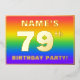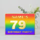 The front of this joyful and eye-catching seventy-ninth birthday party/celebration foil invitation card design features an editable name, a large number “79th”, the message “BIRTHDAY PARTY!”, and a border. The background of the front features an upbeat, colourful, rainbow spectrum inspired gradient pattern. The back features personalised details about the event, such as the date, time, venue, and any other information that may be important. Customisable invitations like these might be a fun way to invite attendees to a birthday party/gathering being held in celebration of somebody’s 79th birthday. [~Z0000599]