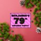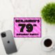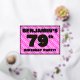 The front of this joyful and upbeat seventy-ninth birthday party foil invitation card design features a custom name, a large number “79th”, the message “BIRTHDAY PARTY!”, and a border. The background of the front has a loving light pink and dark pink striped pattern containing heart shapes. The back features personalised details about the event, such as the date, time, venue/location, and any other important information. Customisable invitations like these might be a fun way to invite attendees/guests to a birthday gathering/party being held to celebrate somebody’s 79th birthday. [~Z0000603]