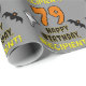 This spooky and scary Hallowe'en birthday themed wrapping paper design features a large number "79", along with the message "HAPPY BIRTHDAY,", and a custom name. There are also depictions of a bat and a ghost on the front. Wrapping paper like this might be a fun way of wrapping gifts or presents that are being given to somebody who was born on Halloween (October 31st) and who is celebrating their seventy ninth birthday. [~Z0000411]