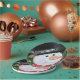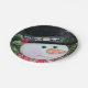 This adorable 7" Christmas paper plate features an original mixed-media acrylic painting by Becky Schultea, "Patchwork Snowman", which includes a cheery, smiling snowman sporting a red patchwork scarf and a dapper patchwork-banded top-hat accented with a sprig of holly and red button berries. He is surrounded by a flurry of snow against a deep green background accented with multi-green brushstrokes. This festive plate would be a fun and functional addition to your home, school, office or church Christmas party or for casual holiday dining. It would also provide a sweet plate to use when sharing Christmas sweets and goodies with your neighbours and friends!