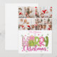 7 Photo Pink Green Bow Tree Merry Christmas Holiday Card