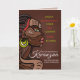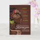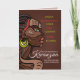 Celebrate the rich traditions of Kwanzaa with these cute greeting cards featuring a beautiful colorful African woman listing the 7 Principles of Kwanza on a dark gradient brown background with an optical square pattern. Personalize with your own 7 Principles of Kwanzaa celebration details.