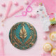 Beautiful gold leaves against a teal background cover this 7" round paper plate.