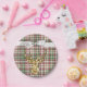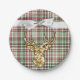 7" Round Paper Plate Gold Glitter Reindeer Plaid