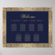 7 Table Navy Blue Gold Roses Script Seating Chart