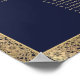 A vintage, elegant seating chart with 7 tables, recommended for a wedding with navy and gold wedding colours. The background is navy blue. It has floral golden borders with intricate wild roses decorations. All text is golden. The word Welcome in the upper part is written in an elegant calligraphic script, the rest in caps.