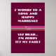 Featuring a delightful design our Funny Wedding Poster is sure to capture everyone's attention. The poster showcases seven words of humourous advice for a long and happy marriage: "Yes Dear, I'm Sorry, It's My Fault." These words serve as a lighthearted reminder of the importance of communication, understanding, and a good sense of humour in a relationship.