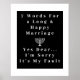 Featuring a delightful design our Funny Wedding Poster is sure to capture everyone's attention. The poster showcases seven words of humourous advice for a long and happy marriage: "Yes Dear, I'm Sorry, It's My Fault." These words serve as a lighthearted reminder of the importance of communication, understanding, and a good sense of humour in a relationship.