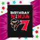 This Birthday Ninja 7 is the perfect gift for a 7 year old ninja birthday party! Features Japanese symbol for Ninjutsu with cartoon ninja karate kick the birthday boy or girl will LOVE! This ninja birthday party gift for boys and girls is perfect fit for a 7 year old that likes ninjas, karate, taekwondo, judo or other martial arts.