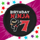 This Birthday Ninja 7 is the perfect gift for a 7 year old ninja birthday party! Features Japanese symbol for Ninjutsu with cartoon ninja karate kick the birthday boy or girl will LOVE! This ninja birthday party gift for boys and girls is perfect fit for a 7 year old that likes ninjas, karate, taekwondo, judo or other martial arts.