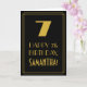 The front of this vintage look and Roaring Twenties inspired birthday-themed greeting card design features a large art deco look inspired number "7", the message "HAPPY 7th BIRTHDAY,", an editable name, and a border pattern consisting of lines. The background of the front is coloured black. The inside features a personalised birthday greeting message, or could perhaps be cleared and left blank if a message is to be written by hand instead. A customisable birthday card like this might be a fun way to send birthday wishes to somebody who is celebrating their seventh birthday. [~Z0000502]
