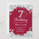 7th Birthday Burgundy Red and Silver Diamond Invitation