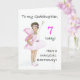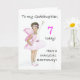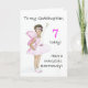 A 7th Birthday Card for a goddaughter, with a black fairy in a pink dress, from a watercolour illustration by Judy Adamson. Please feel free to customize the inside message and contact me through my store if you would like changes to the front cover.