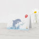 Cute dolphin jumping out of splashing water with red balloon for 7th birthday.