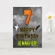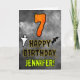 The front of this scary and spooky Halloween themed birthday greeting card design features a large number “7” and the message “HAPPY BIRTHDAY,”, plus a customisable name. There are also depictions of a ghost and a bat on the front. The inside features a customised birthday greeting message, or could perhaps be cleared and left blank if a message is to be written by hand instead. A customisable birthday card like this might be a fun way to acknowledge somebody’s seventh birthday that also falls on Halloween (October 31st). [~Z0000547]