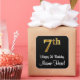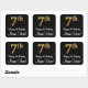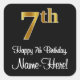 This elegant, sophisticated, and stylish birthday square sticker design features a large ordinal number “7th” having an imitation/faux gold-inspired look, plus the birthday greeting message “Happy 7th Birthday,” and a customisable name in a script-style font. The background is coloured black. Sophisticated stickers this might be used when wrapping a gift or present in honour of somebody’s 7th birthday, or perhaps may be given out to the attendees at a birthday party. [~Z0000517]