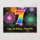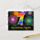 7th Birthday – Fun Fireworks Pattern + Rainbow 7 Postcard