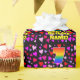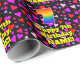 This cheerful and happy birthday-themed wrapping paper design features a large number “7” with a rainbow spectrum gradient inspired pattern, along with the message “Happy 7th Birthday,”, and a personalised name. The background features a pattern of pink, red, and purple heart shapes of various sizes. Personalised birthday themed wrapping paper like this might be used when giving a gift or present in celebration of somebody’s seventh birthday. [~Z0000549]