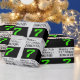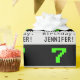 This geeky and fun birthday wrapping paper design features a large green vintage video game style number "7" on a black coloured background. It also features the birthday greeting message "Happy 7th Birthday,", and a name that can be personalised. Birthday themed wrapping paper like this might be a fun way to wrap a gift or present being given to somebody who is celebrating their 7th birthday. [~Z0000403]