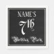 This luxurious and ornate birthday paper napkin design features a personalized name and the message “7th Birthday Party”. The large number “7th” and the words “Birthday Party” are in elegant script-style text, and the background is colored black by default (although it can be customized). Elegant, fancy paper napkins like this might be used at a birthday party being held to celebrate somebody’s seventh birthday. [~Z0000563]