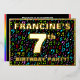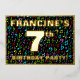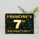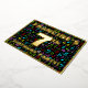 The front of this joyful seventh birthday celebration/party foil invitation card design features a customisable name, a large number “7th”, the message “BIRTHDAY PARTY!”, and a border. The background of the front features an upbeat, colourful musical notation symbols pattern. The back features personalised details about the event, such as the date, time, venue/place, and any other relevant information. Customisable invitations like these might be a fun way to invite guests to a birthday party/gathering being held to honour somebody’s 7th birthday. [~Z0000601]