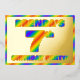 The front of this fun and joyful seventh birthday celebration/party foil invitation card features a customisable name, a large number “7th”, the message “BIRTHDAY PARTY!”, and a border, all featuring an eye-catching, colourful, rainbow spectrum inspired gradient pattern. The back features personalised details about the event, such as the date, time, location/venue, and any other information that may be important. Vibrant, upbeat, customisable invitations like these might be used to invite guests to a birthday gathering being held in celebration of somebody’s 7th birthday. [~Z0000593]