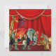 Vintage circus birthday party invitation with circus elephant, zebra, giraffe, bear, acrobat and ringmaster on a red and gold curtain background. This beautiful red and gold vintage circus birthday party invitation is easily customised for your party or event by adding your event details, font style, font size & colour, and wording.
