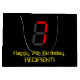 This silly and geeky birthday gift bag design features a large number "7" having a red seven segment digital display inspired look, along with the message "Happy 7th Birthday," and a custom name in geeky retro style yellow text, on a black coloured background. Personalised gift bags like this might be used for wrapping presents or gifts being given in honour of somebody’s seventh birthday. [~Z0000389]