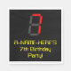 This fun and nerdy birthday-themed paper napkin design features a large number "7" having a red seven segment digital display inspired appearance, along with a custom name and the message "7th Birthday Party!" in nerdy yellow text, on a black coloured background. Fun, customised birthday themed paper napkins like this might be used at somebody’s seventh birthday celebration. [~Z0000388]