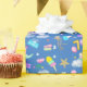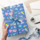 7th Birthday Unicorn Pattern Blue Wrapping Paper