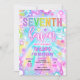 7th Heaven Neon Glow 7th Birthday Party Invitation