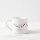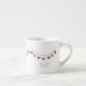 Personalized 7th wool wedding anniversary espresso cup with a cream and pink heart bunting design.
