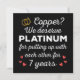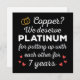 'Copper? We deserve Platinum for putting up with each other for 7 Years' quote for a couple who got married 7 years ago or a couple renewing wedding vows on their copper anniversary.