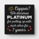 'Copper? We deserve Platinum for putting up with each other for 7 Years' quote for a couple who got married 7 years ago or a couple renewing wedding vows on their copper anniversary.
