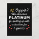 'Copper? We deserve Platinum for putting up with each other for 7 Years' quote for a couple who got married 7 years ago or a couple renewing wedding vows on their copper anniversary.