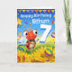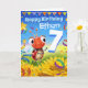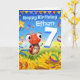 A gorgeous little ladybug hovering above sunflowers and bringing a colourful birthday greeting for the very special 7 year old in your world.