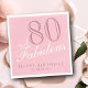 80 and Fabulous Elegant Script 80th Birthday Napkins. The saying 80 and fabulous is in modern script on a pink background. Make your own 80th birthday party paper napkin for her. Customise with the name and age.
